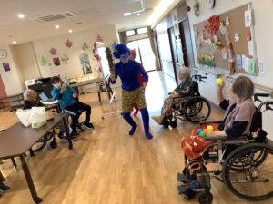 有料老人ホーム令寿では、豆まきではなくボールで鬼退治をしました。